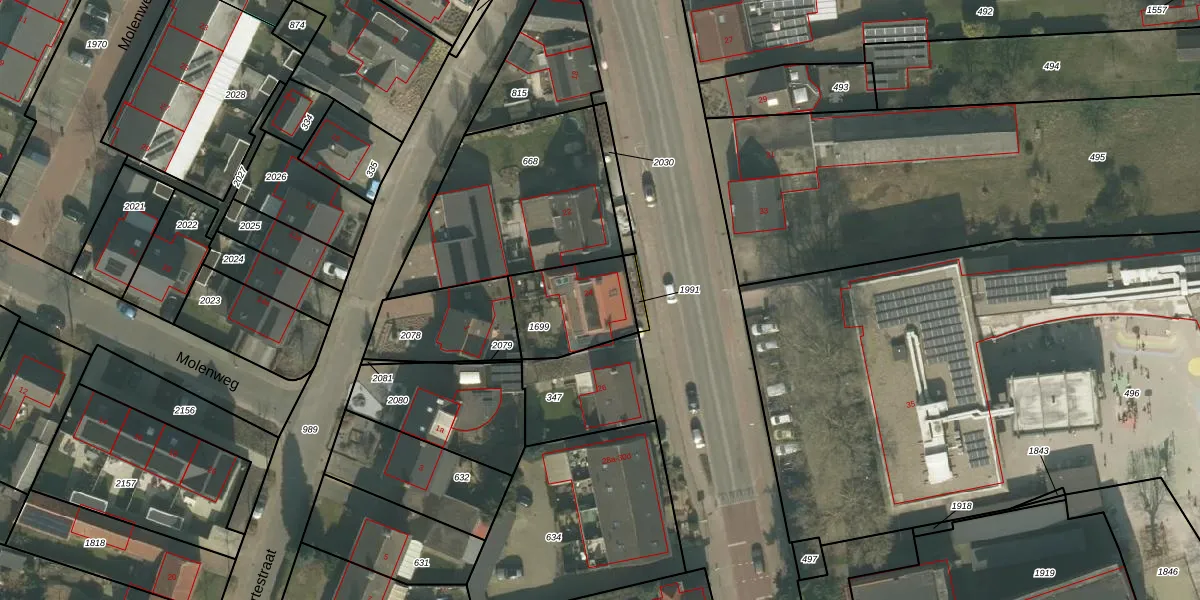 Gebruik de zoekbalk of klik op een perceel voor informatie over de adressen binnen dit perceel.