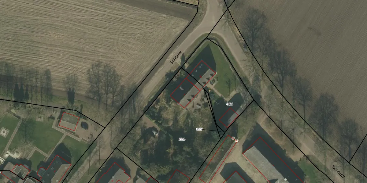 Het perceel waarop Schouw 3 staat heeft een oppervlakte van 2153 m². Dit is een zeer groot perceel. De perceeloppervlakte wordt geregistreerd door het Kadaster. Gedetailleerde informatie over de maten van dit perceel kunt u vinden in het rapport Kadastrale kaart met maatvoering van Schouw 3.