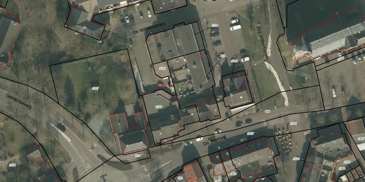 Het perceel waarop Sint Wilbertsplein 6-a staat heeft een oppervlakte van 714 m². Dit is een groot perceel. De perceeloppervlakte wordt geregistreerd door het Kadaster. Gedetailleerde informatie over de maten van dit perceel kunt u vinden in het rapport Kadastrale kaart met maatvoering van Sint Wilbertsplein 6-a.