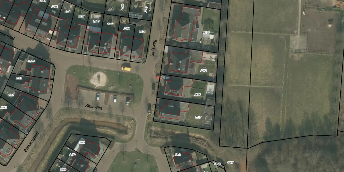 Sluisweg 25 is gelegen op kadastraal perceel BKL02N2516. Deze kadastrale aanduiding is uniek en wordt gebruikt door het Kadaster om eigendomsrechten en andere zakelijke rechten vast te leggen. Het perceel maakt onderdeel uit van de kadastrale gemeente Bakel en Milheeze.