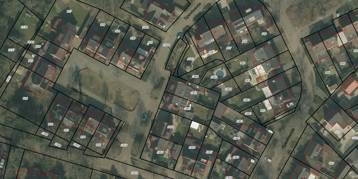 Het perceel waarop Speelweide 9-c staat heeft een oppervlakte van 300 m². Dit is een groot perceel. De perceeloppervlakte wordt geregistreerd door het Kadaster. Gedetailleerde informatie over de maten van dit perceel kunt u vinden in het rapport Kadastrale kaart met maatvoering van Speelweide 9-c.