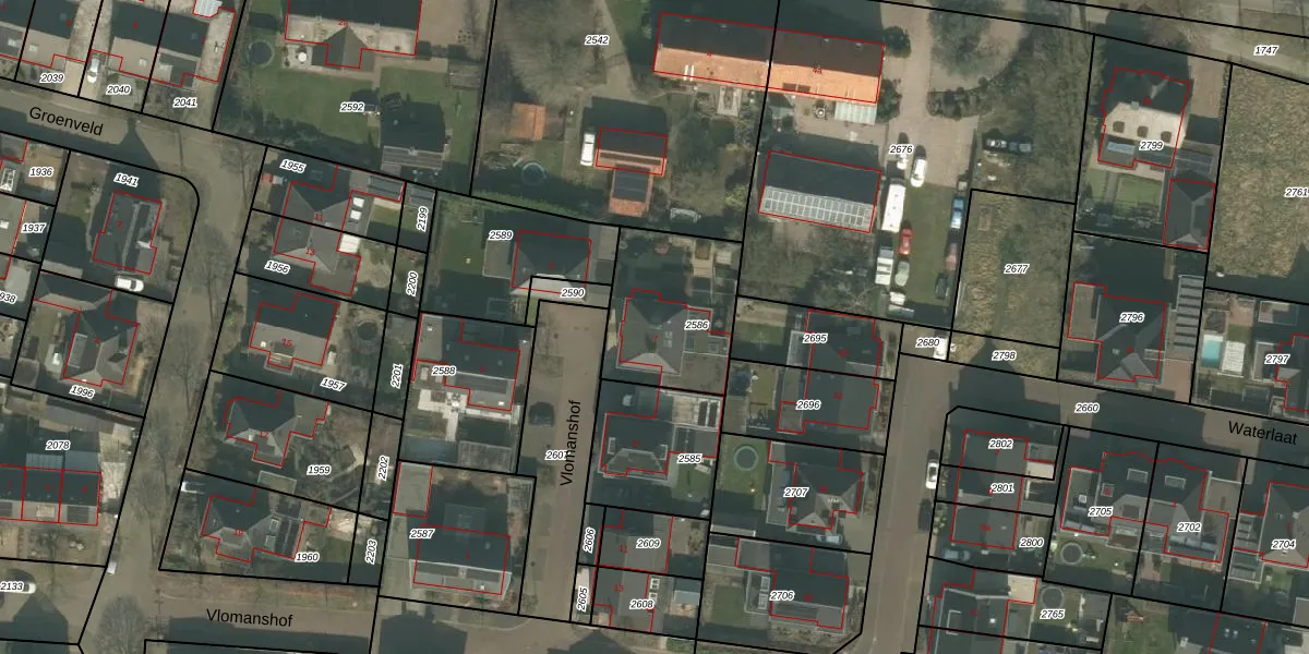 Vlomanshof 7 is gelegen op kadastraal perceel BKL02N2586. Deze kadastrale aanduiding is uniek en wordt gebruikt door het Kadaster om eigendomsrechten en andere zakelijke rechten vast te leggen. Het perceel maakt onderdeel uit van de kadastrale gemeente Bakel en Milheeze.