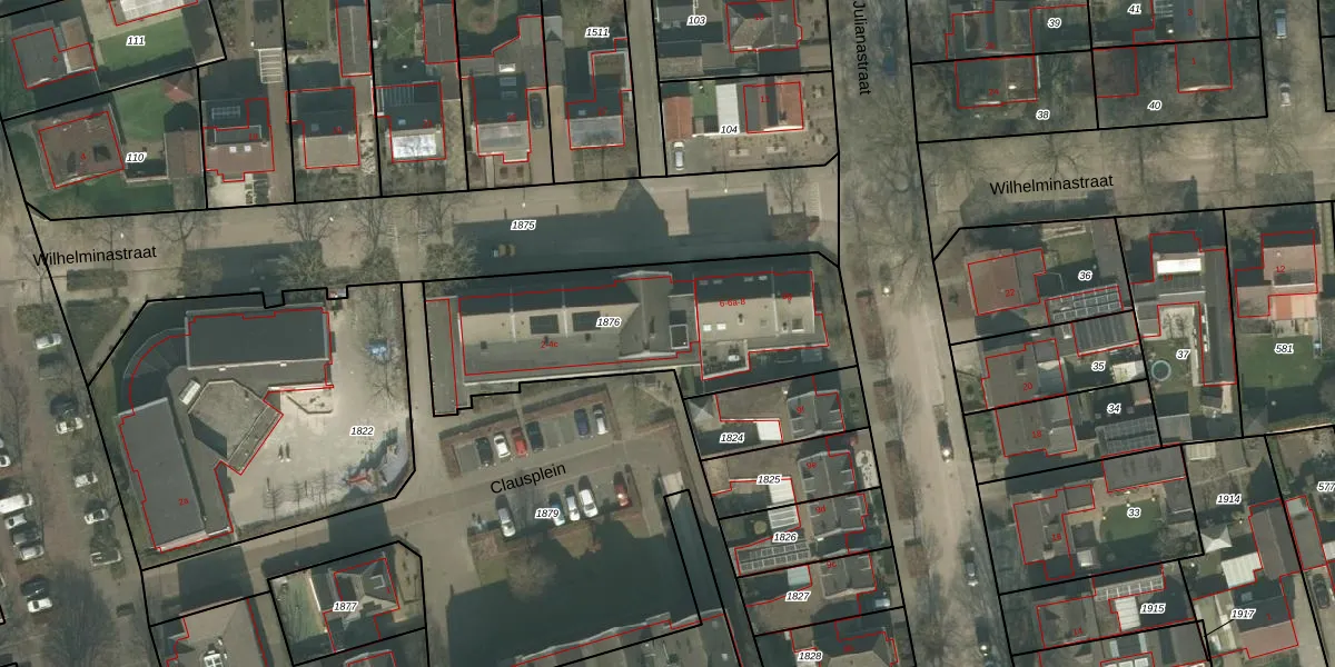 Het perceel waarop Wilhelminastraat 2 staat heeft een oppervlakte van 1124 m². Dit is een zeer groot perceel. De perceeloppervlakte wordt geregistreerd door het Kadaster. Gedetailleerde informatie over de maten van dit perceel kunt u vinden in het rapport Kadastrale kaart met maatvoering van Wilhelminastraat 2.