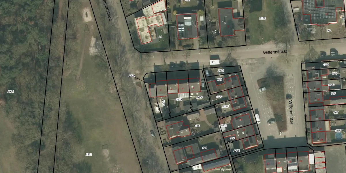 Het perceel waarop Willemstraat 4 staat heeft een oppervlakte van 323 m². Dit is een groot perceel. De perceeloppervlakte wordt geregistreerd door het Kadaster. Gedetailleerde informatie over de maten van dit perceel kunt u vinden in het rapport Kadastrale kaart met maatvoering van Willemstraat 4.