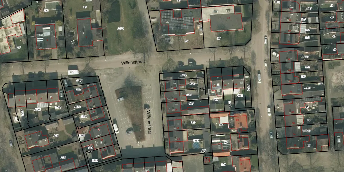 Het perceel waarop Willemstraat 40 staat heeft een oppervlakte van 167 m². Dit is een middelgroot perceel. De perceeloppervlakte wordt geregistreerd door het Kadaster. Gedetailleerde informatie over de maten van dit perceel kunt u vinden in het rapport Kadastrale kaart met maatvoering van Willemstraat 40.