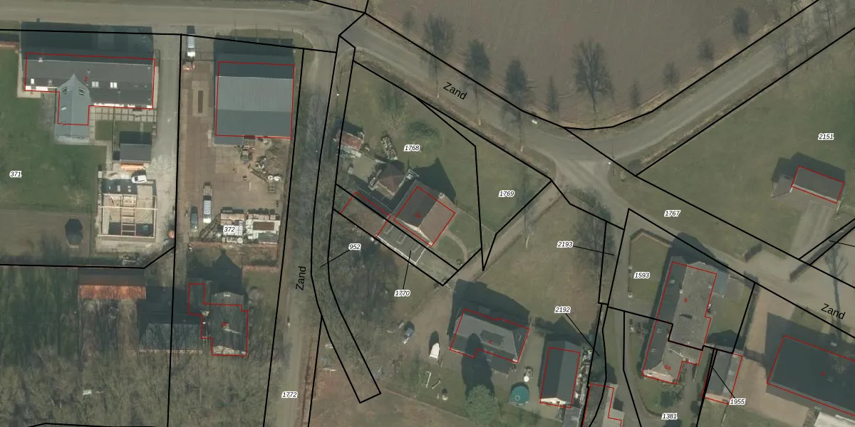 Het perceel waarop Zand 2-a staat heeft een oppervlakte van 1012 m². Dit is een zeer groot perceel. De perceeloppervlakte wordt geregistreerd door het Kadaster. Gedetailleerde informatie over de maten van dit perceel kunt u vinden in het rapport Kadastrale kaart met maatvoering van Zand 2-a.