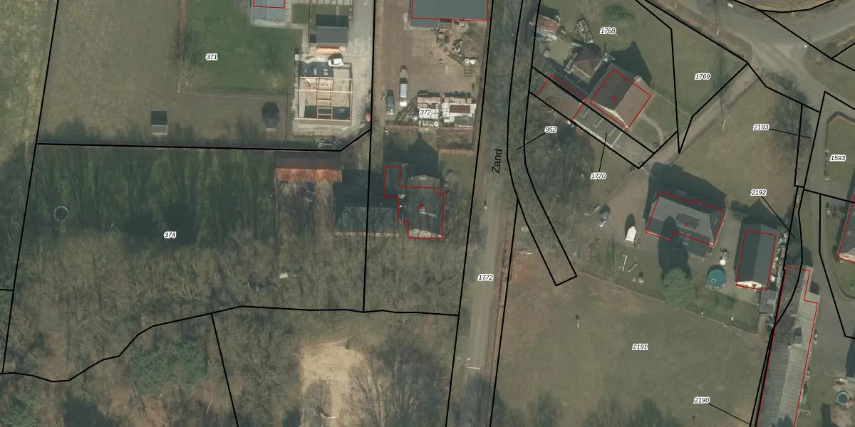 Het perceel waarop Zand 2-b staat heeft een oppervlakte van 2320 m². Dit is een zeer groot perceel. De perceeloppervlakte wordt geregistreerd door het Kadaster. Gedetailleerde informatie over de maten van dit perceel kunt u vinden in het rapport Kadastrale kaart met maatvoering van Zand 2-b.