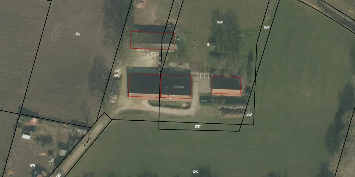Het perceel waarop Zand 9 staat heeft een oppervlakte van 4240 m². Dit is een zeer groot perceel. De perceeloppervlakte wordt geregistreerd door het Kadaster. Gedetailleerde informatie over de maten van dit perceel kunt u vinden in het rapport Kadastrale kaart met maatvoering van Zand 9.