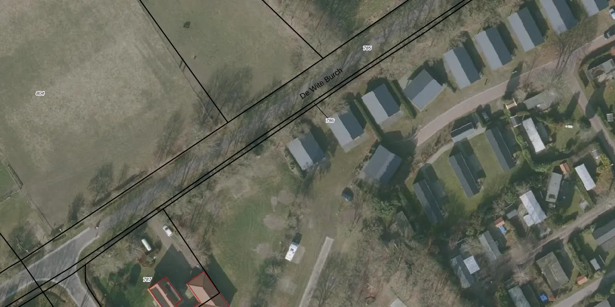 Het perceel waarop De Wite Burch 7-0201 staat heeft een oppervlakte van 5,0 ha. Dit is een zeer groot perceel. De perceeloppervlakte wordt geregistreerd door het Kadaster. Gedetailleerde informatie over de maten van dit perceel kunt u vinden in het rapport Kadastrale kaart met maatvoering van De Wite Burch 7-0201.