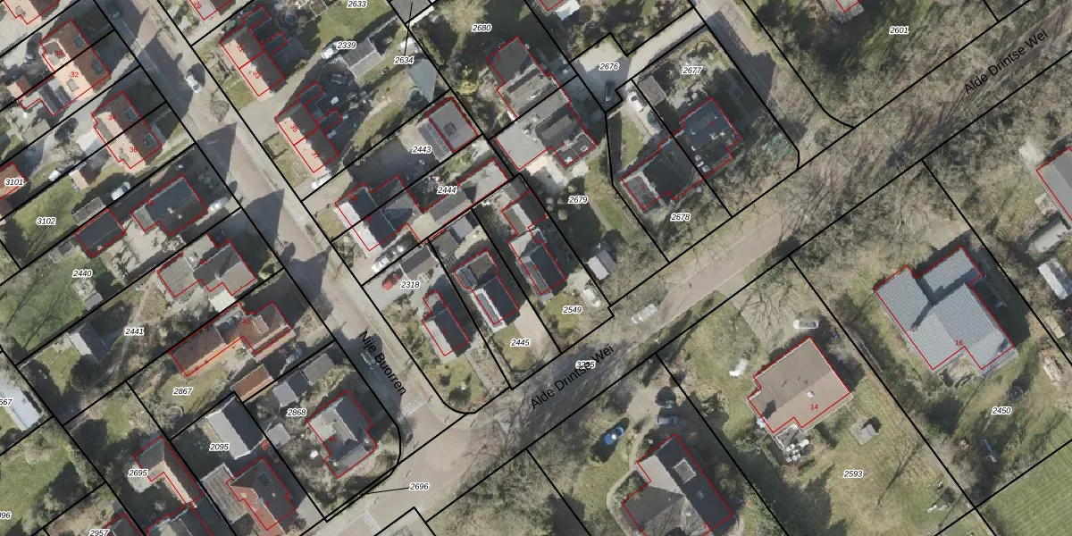 Het perceel waarop Alde Drintse Wei 9 staat heeft een oppervlakte van 372 m². Dit is een groot perceel. De perceeloppervlakte wordt geregistreerd door het Kadaster. Gedetailleerde informatie over de maten van dit perceel kunt u vinden in het rapport Kadastrale kaart met maatvoering van Alde Drintse Wei 9.