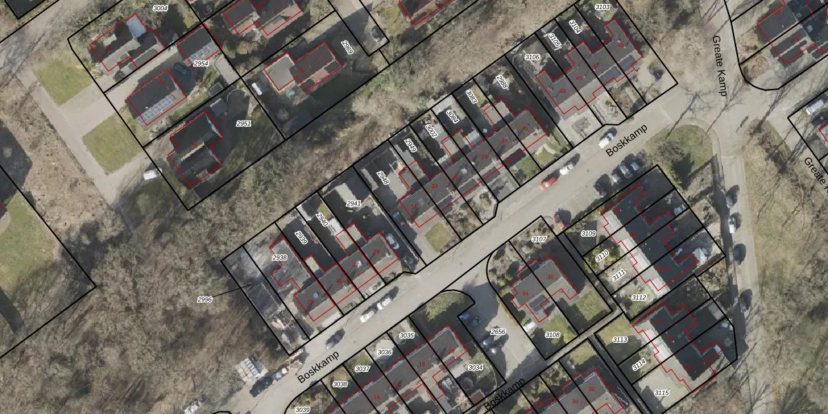 Het perceel waarop Boskkamp 31 staat heeft een oppervlakte van 315 m². Dit is een groot perceel. De perceeloppervlakte wordt geregistreerd door het Kadaster. Gedetailleerde informatie over de maten van dit perceel kunt u vinden in het rapport Kadastrale kaart met maatvoering van Boskkamp 31.