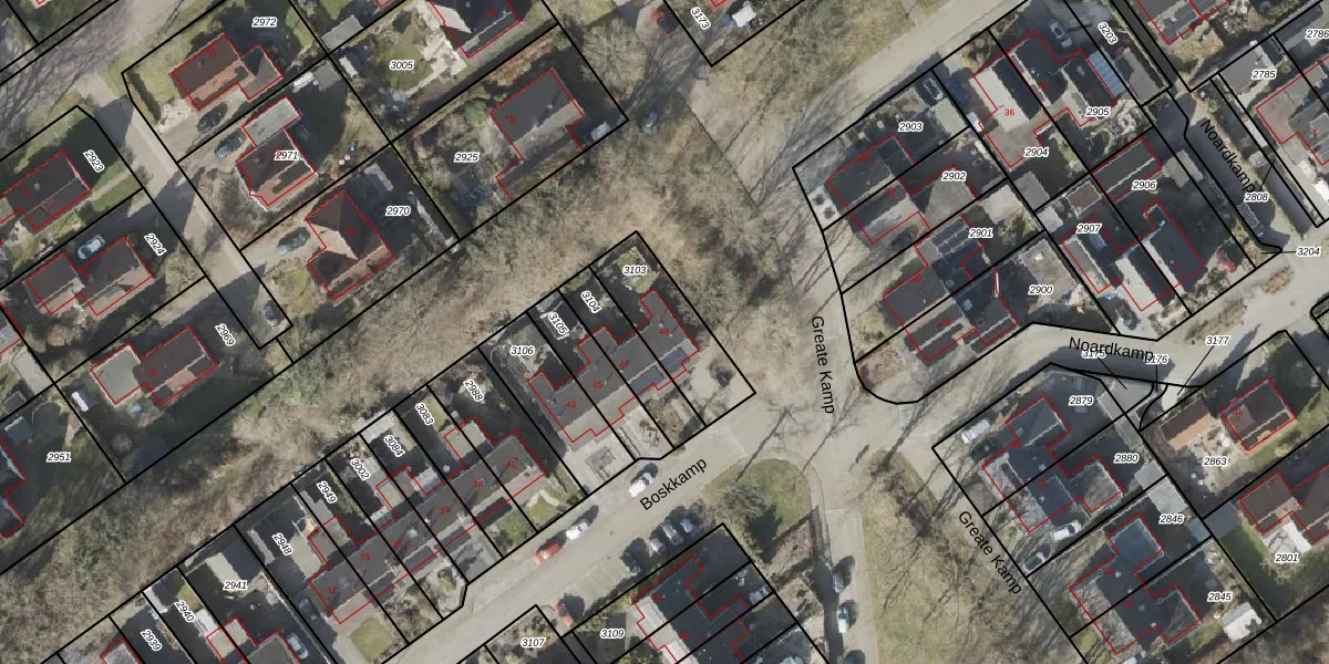 Het perceel waarop Boskkamp 49 staat heeft een oppervlakte van 267 m². Dit is een middelgroot perceel. De perceeloppervlakte wordt geregistreerd door het Kadaster. Gedetailleerde informatie over de maten van dit perceel kunt u vinden in het rapport Kadastrale kaart met maatvoering van Boskkamp 49.
