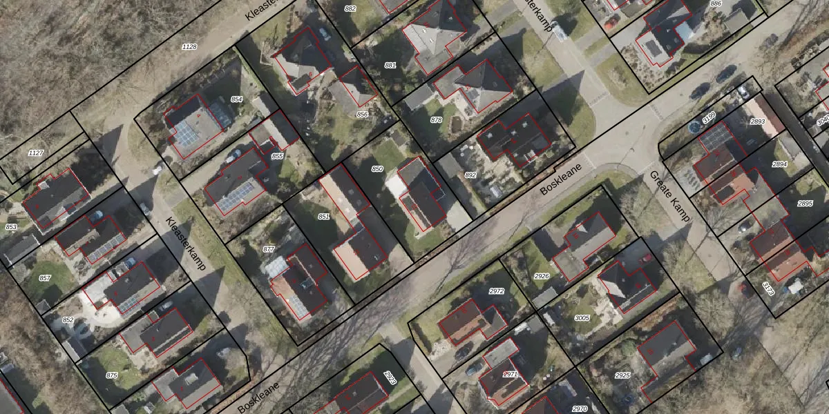 Het perceel waarop Boskleane 13 staat heeft een oppervlakte van 531 m². Dit is een groot perceel. De perceeloppervlakte wordt geregistreerd door het Kadaster. Gedetailleerde informatie over de maten van dit perceel kunt u vinden in het rapport Kadastrale kaart met maatvoering van Boskleane 13.