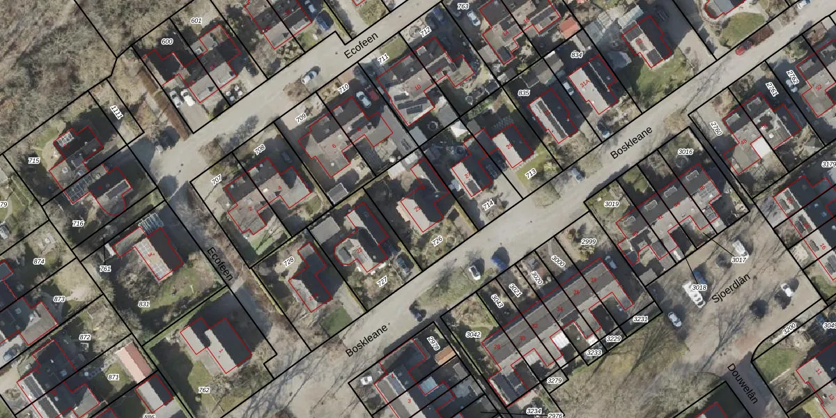 Het perceel waarop Boskleane 25 staat heeft een oppervlakte van 412 m². Dit is een groot perceel. De perceeloppervlakte wordt geregistreerd door het Kadaster. Gedetailleerde informatie over de maten van dit perceel kunt u vinden in het rapport Kadastrale kaart met maatvoering van Boskleane 25.