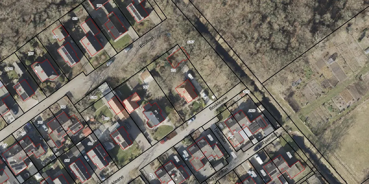 Het perceel waarop Boskleane 37 staat heeft een oppervlakte van 799 m². Dit is een groot perceel. De perceeloppervlakte wordt geregistreerd door het Kadaster. Gedetailleerde informatie over de maten van dit perceel kunt u vinden in het rapport Kadastrale kaart met maatvoering van Boskleane 37.