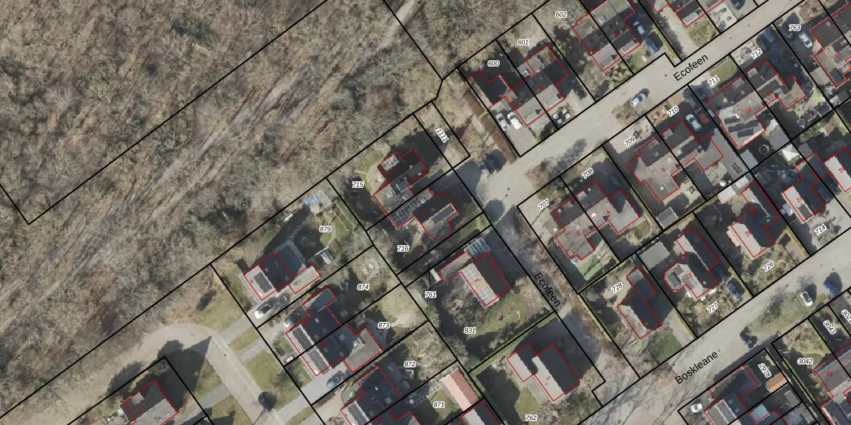 Het perceel waarop Ecofeen 9 staat heeft een oppervlakte van 315 m². Dit is een groot perceel. De perceeloppervlakte wordt geregistreerd door het Kadaster. Gedetailleerde informatie over de maten van dit perceel kunt u vinden in het rapport Kadastrale kaart met maatvoering van Ecofeen 9.