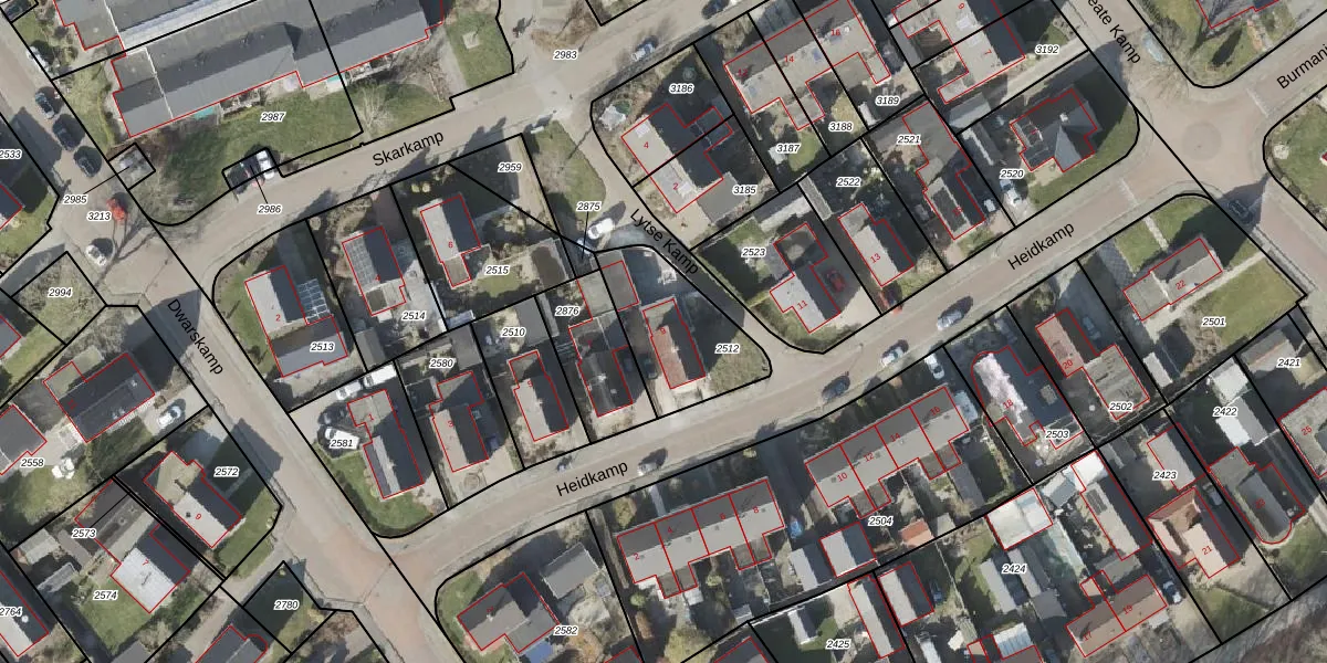 Het perceel waarop Heidkamp 9 staat heeft een oppervlakte van 365 m². Dit is een groot perceel. De perceeloppervlakte wordt geregistreerd door het Kadaster. Gedetailleerde informatie over de maten van dit perceel kunt u vinden in het rapport Kadastrale kaart met maatvoering van Heidkamp 9.