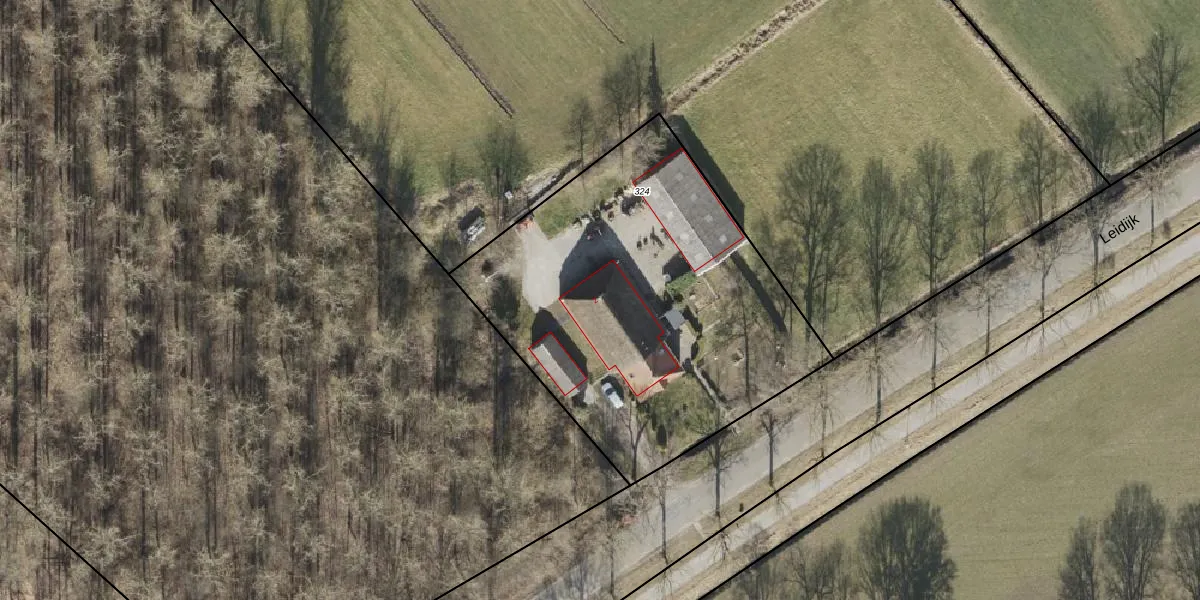 Het perceel waarop Leidyk 2 staat heeft een oppervlakte van 2050 m². Dit is een zeer groot perceel. De perceeloppervlakte wordt geregistreerd door het Kadaster. Gedetailleerde informatie over de maten van dit perceel kunt u vinden in het rapport Kadastrale kaart met maatvoering van Leidyk 2.