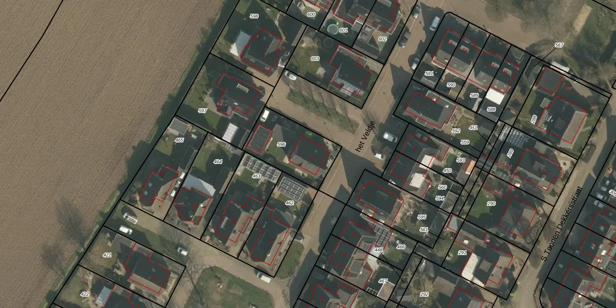 Het perceel waarop het Veldje 1 staat heeft een oppervlakte van 451 m². Dit is een groot perceel. De perceeloppervlakte wordt geregistreerd door het Kadaster. Gedetailleerde informatie over de maten van dit perceel kunt u vinden in het rapport Kadastrale kaart met maatvoering van het Veldje 1.
