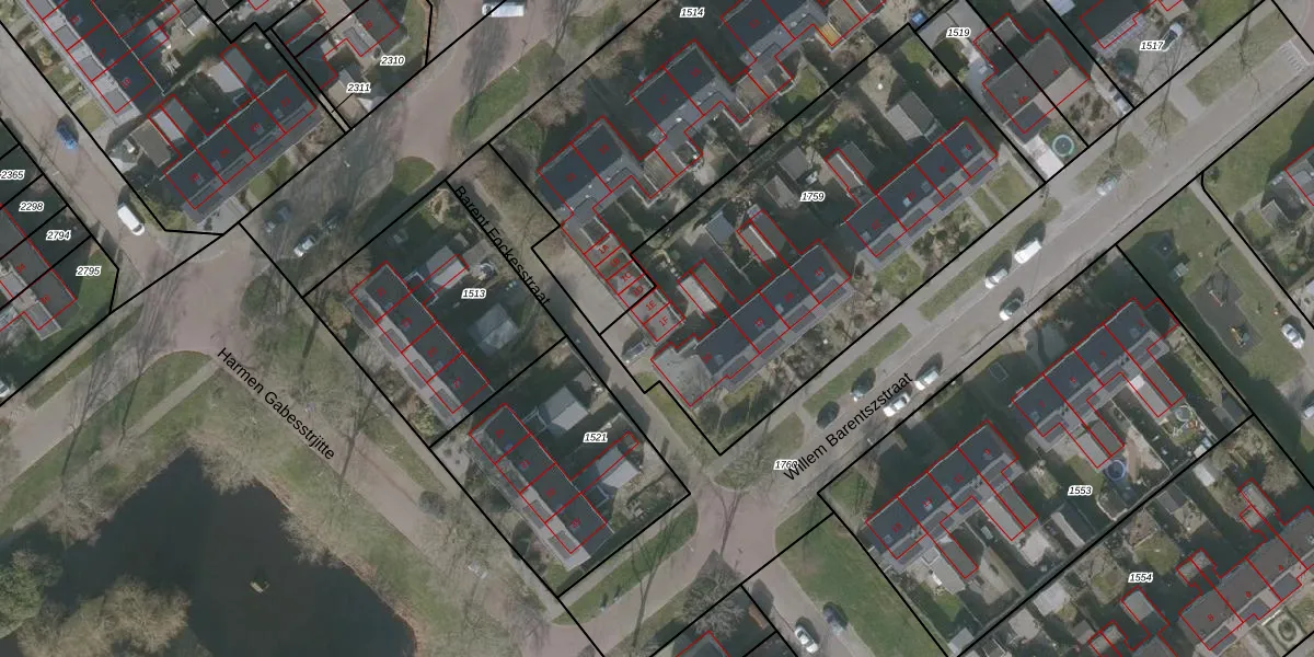 Het perceel waarop Barent Fockesstraat 1-F staat heeft een oppervlakte van 2040 m². Dit is een zeer groot perceel. De perceeloppervlakte wordt geregistreerd door het Kadaster. Gedetailleerde informatie over de maten van dit perceel kunt u vinden in het rapport Kadastrale kaart met maatvoering van Barent Fockesstraat 1-F.