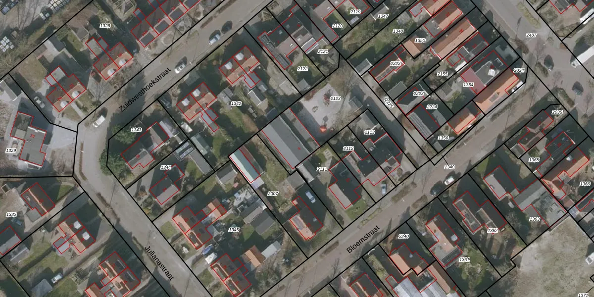 Gebruik de zoekbalk of klik op een perceel voor informatie over de adressen binnen dit perceel.