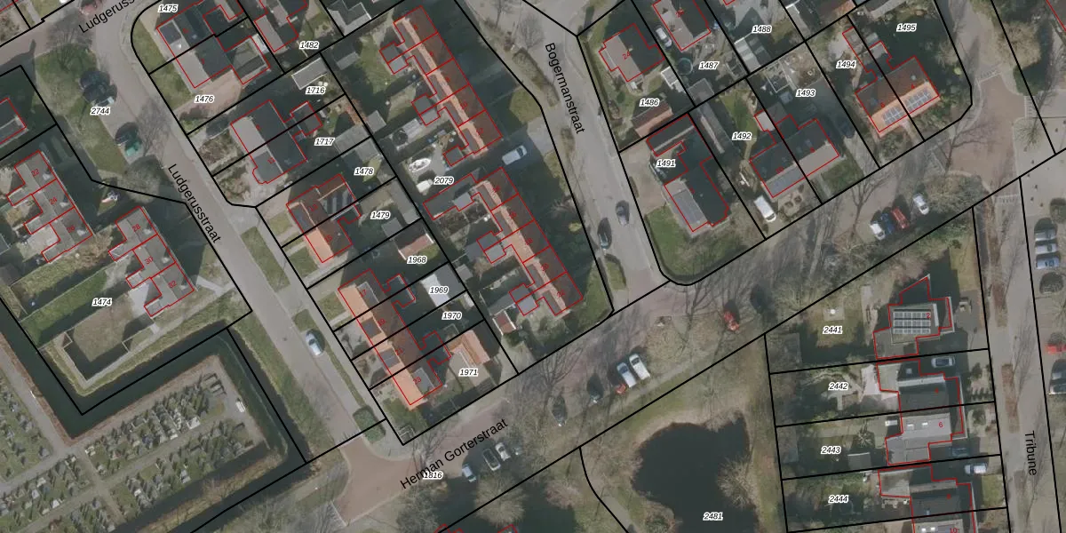 Het perceel waarop Bogermanstraat 20 staat heeft een oppervlakte van 1864 m². Dit is een zeer groot perceel. De perceeloppervlakte wordt geregistreerd door het Kadaster. Gedetailleerde informatie over de maten van dit perceel kunt u vinden in het rapport Kadastrale kaart met maatvoering van Bogermanstraat 20.