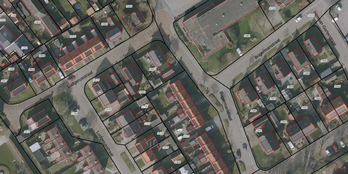 Het perceel waarop Bogermanstraat 4 staat heeft een oppervlakte van 1864 m². Dit is een zeer groot perceel. De perceeloppervlakte wordt geregistreerd door het Kadaster. Gedetailleerde informatie over de maten van dit perceel kunt u vinden in het rapport Kadastrale kaart met maatvoering van Bogermanstraat 4.