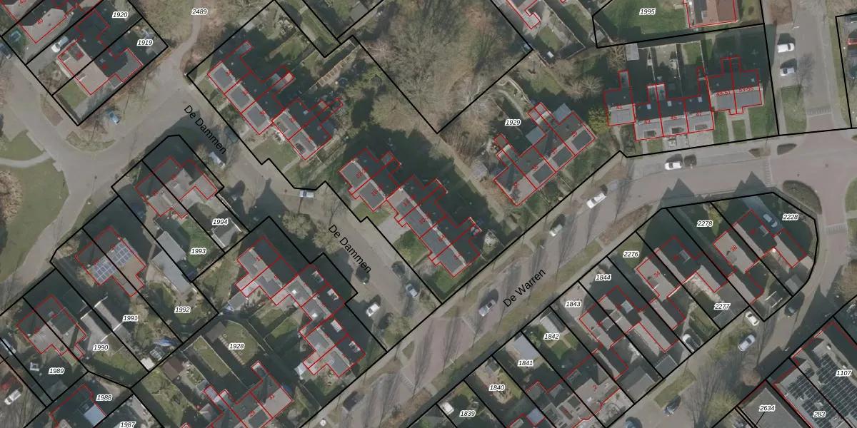 Het perceel waarop De Dammen 12 staat heeft een oppervlakte van 5637 m². Dit is een zeer groot perceel. De perceeloppervlakte wordt geregistreerd door het Kadaster. Gedetailleerde informatie over de maten van dit perceel kunt u vinden in het rapport Kadastrale kaart met maatvoering van De Dammen 12.