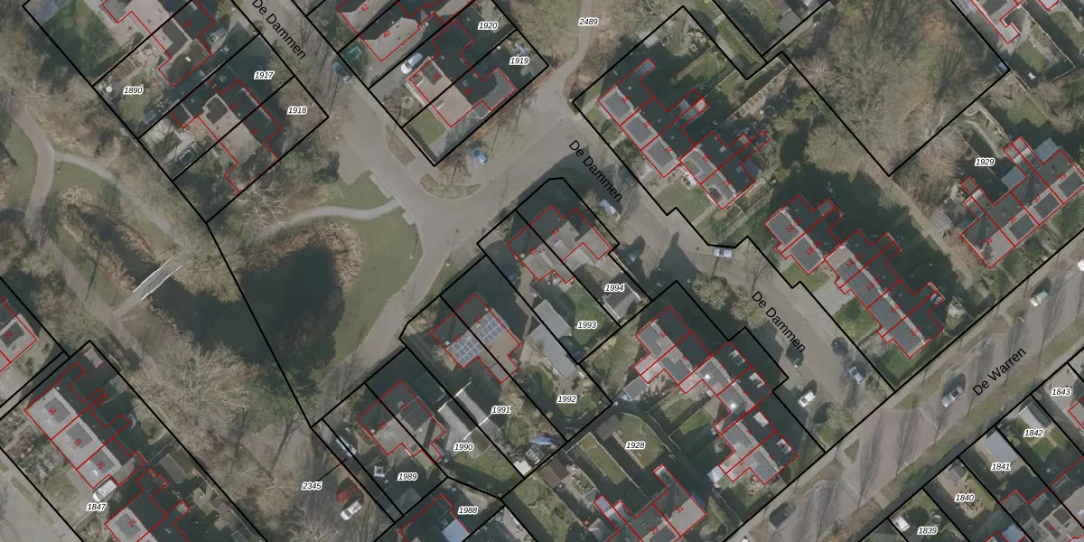 Het perceel waarop De Dammen 15 staat heeft een oppervlakte van 306 m². Dit is een groot perceel. De perceeloppervlakte wordt geregistreerd door het Kadaster. Gedetailleerde informatie over de maten van dit perceel kunt u vinden in het rapport Kadastrale kaart met maatvoering van De Dammen 15.