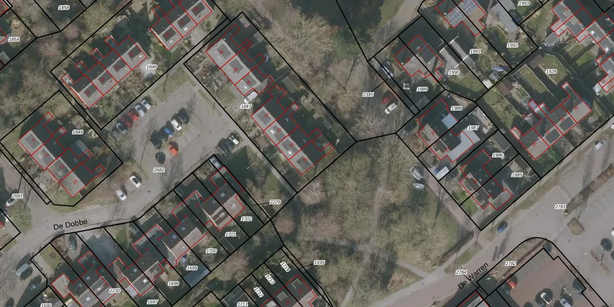 Het perceel waarop De Dobbe 18 staat heeft een oppervlakte van 1429 m². Dit is een zeer groot perceel. De perceeloppervlakte wordt geregistreerd door het Kadaster. Gedetailleerde informatie over de maten van dit perceel kunt u vinden in het rapport Kadastrale kaart met maatvoering van De Dobbe 18.