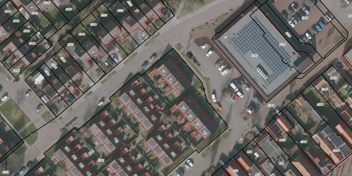 Het perceel waarop De Finne 9 staat heeft een oppervlakte van 6680 m². Dit is een zeer groot perceel. De perceeloppervlakte wordt geregistreerd door het Kadaster. Gedetailleerde informatie over de maten van dit perceel kunt u vinden in het rapport Kadastrale kaart met maatvoering van De Finne 9.