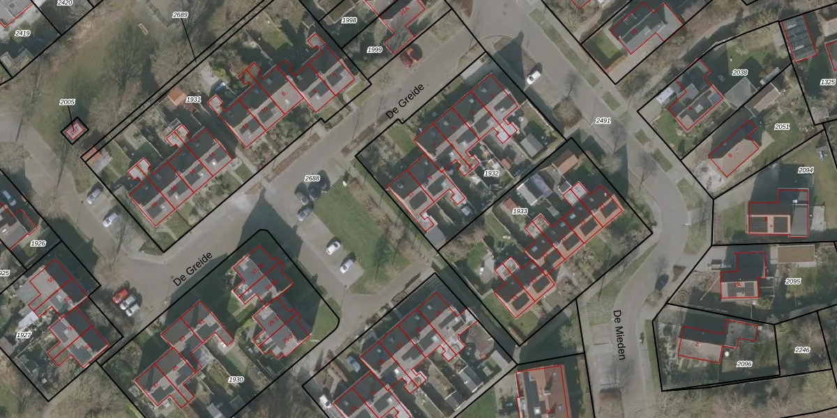 Het perceel waarop De Greide 11 staat heeft een oppervlakte van 1185 m². Dit is een zeer groot perceel. De perceeloppervlakte wordt geregistreerd door het Kadaster. Gedetailleerde informatie over de maten van dit perceel kunt u vinden in het rapport Kadastrale kaart met maatvoering van De Greide 11.