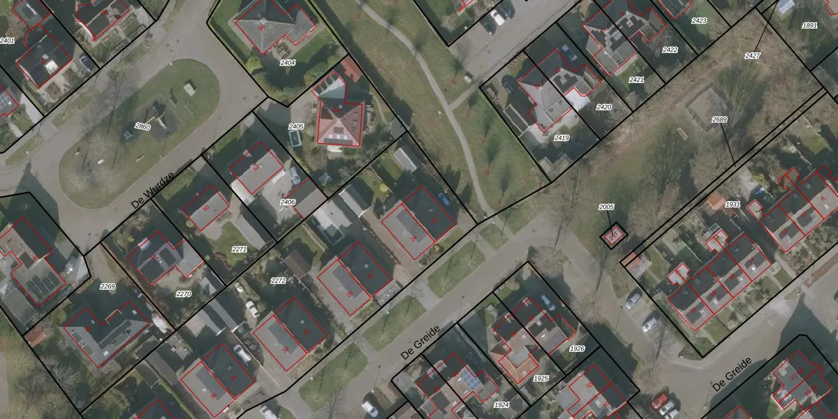 Het perceel waarop De Greide 22 staat heeft een oppervlakte van 2783 m². Dit is een zeer groot perceel. De perceeloppervlakte wordt geregistreerd door het Kadaster. Gedetailleerde informatie over de maten van dit perceel kunt u vinden in het rapport Kadastrale kaart met maatvoering van De Greide 22.