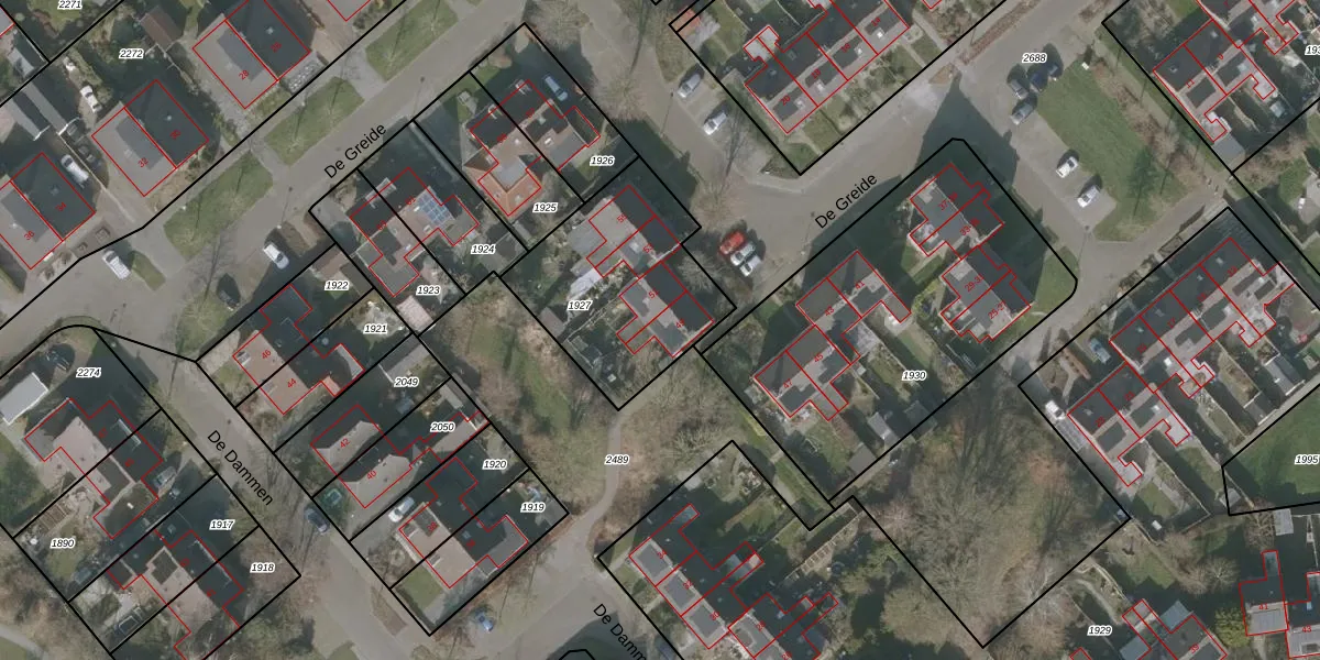 Het perceel waarop De Greide 49 staat heeft een oppervlakte van 706 m². Dit is een groot perceel. De perceeloppervlakte wordt geregistreerd door het Kadaster. Gedetailleerde informatie over de maten van dit perceel kunt u vinden in het rapport Kadastrale kaart met maatvoering van De Greide 49.