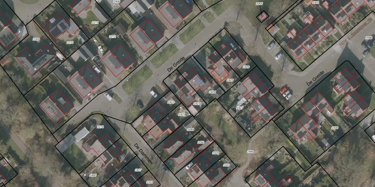 Het perceel waarop De Greide 63 staat heeft een oppervlakte van 253 m². Dit is een middelgroot perceel. De perceeloppervlakte wordt geregistreerd door het Kadaster. Gedetailleerde informatie over de maten van dit perceel kunt u vinden in het rapport Kadastrale kaart met maatvoering van De Greide 63.