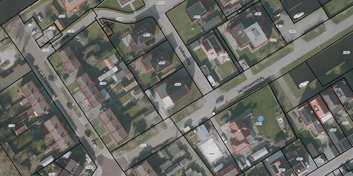 Het perceel waarop De Volharding 1 staat heeft een oppervlakte van 528 m². Dit is een groot perceel. De perceeloppervlakte wordt geregistreerd door het Kadaster. Gedetailleerde informatie over de maten van dit perceel kunt u vinden in het rapport Kadastrale kaart met maatvoering van De Volharding 1.