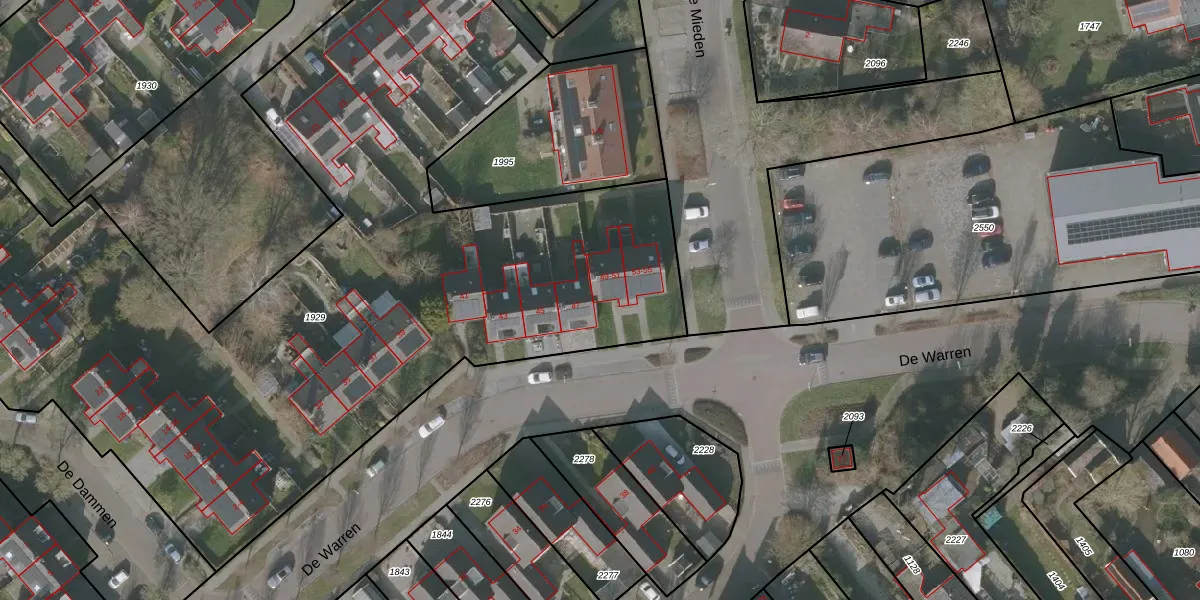 Het perceel waarop De Warren 49 staat heeft een oppervlakte van 5637 m². Dit is een zeer groot perceel. De perceeloppervlakte wordt geregistreerd door het Kadaster. Gedetailleerde informatie over de maten van dit perceel kunt u vinden in het rapport Kadastrale kaart met maatvoering van De Warren 49.
