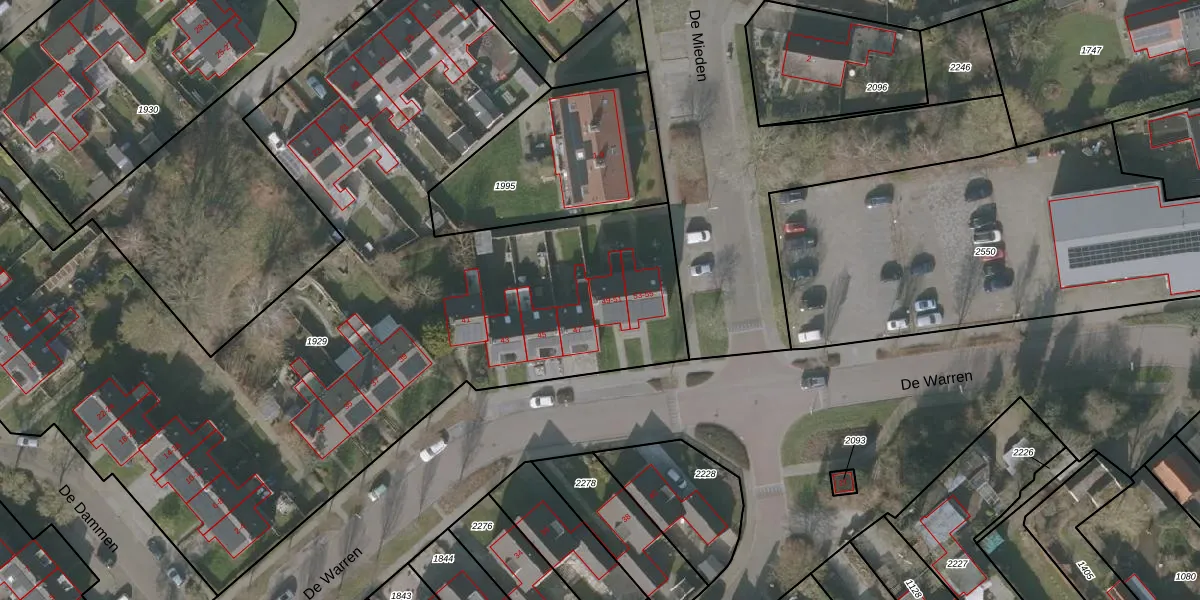 Het perceel waarop De Warren 51 staat heeft een oppervlakte van 5637 m². Dit is een zeer groot perceel. De perceeloppervlakte wordt geregistreerd door het Kadaster. Gedetailleerde informatie over de maten van dit perceel kunt u vinden in het rapport Kadastrale kaart met maatvoering van De Warren 51.