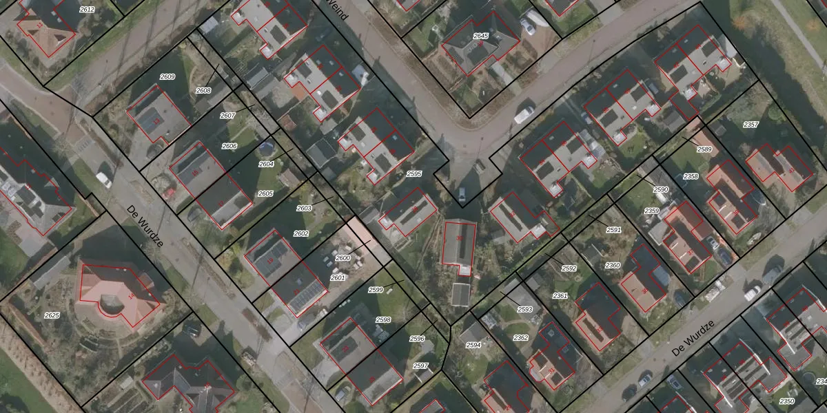 Het perceel waarop De Weind 28 staat heeft een oppervlakte van 4098 m². Dit is een zeer groot perceel. De perceeloppervlakte wordt geregistreerd door het Kadaster. Gedetailleerde informatie over de maten van dit perceel kunt u vinden in het rapport Kadastrale kaart met maatvoering van De Weind 28.