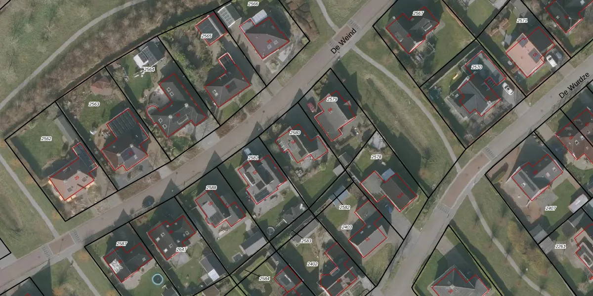 Gebruik de zoekbalk of klik op een perceel voor informatie over de adressen binnen dit perceel.