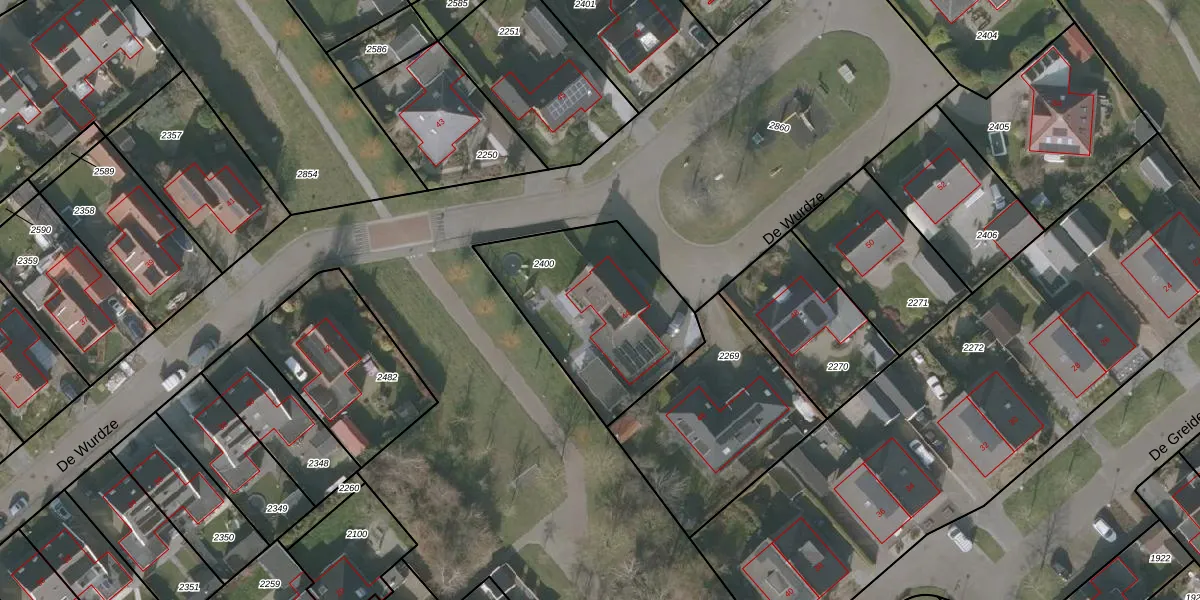 Gebruik de zoekbalk of klik op een perceel voor informatie over de adressen binnen dit perceel.