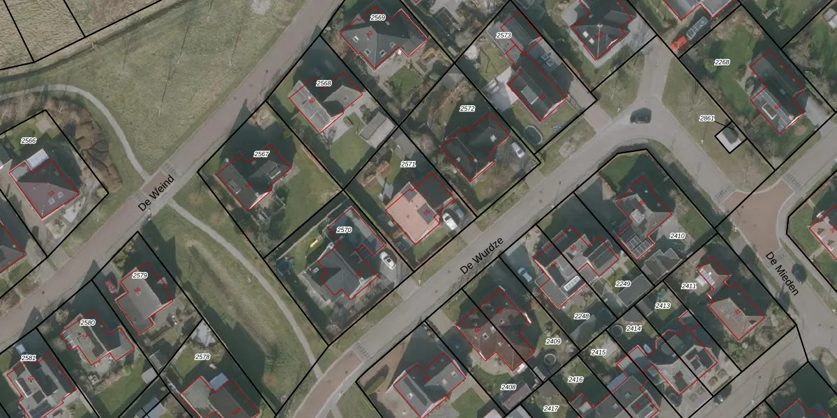Het perceel waarop De Wurdze 55 staat heeft een oppervlakte van 548 m². Dit is een groot perceel. De perceeloppervlakte wordt geregistreerd door het Kadaster. Gedetailleerde informatie over de maten van dit perceel kunt u vinden in het rapport Kadastrale kaart met maatvoering van De Wurdze 55.