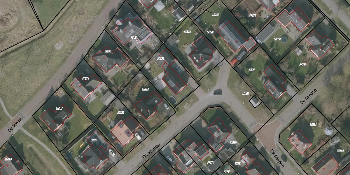Het perceel waarop De Wurdze 59 staat heeft een oppervlakte van 609 m². Dit is een groot perceel. De perceeloppervlakte wordt geregistreerd door het Kadaster. Gedetailleerde informatie over de maten van dit perceel kunt u vinden in het rapport Kadastrale kaart met maatvoering van De Wurdze 59.