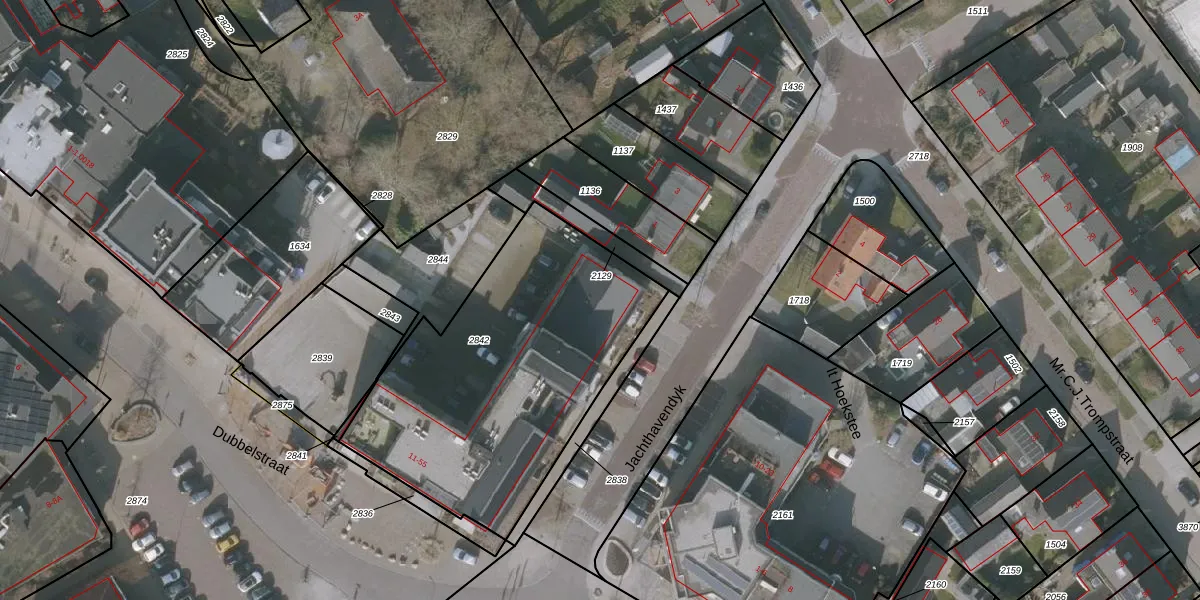 Het perceel waarop Dubbelstraat 37 staat heeft een oppervlakte van 1497 m². Dit is een zeer groot perceel. De perceeloppervlakte wordt geregistreerd door het Kadaster. Gedetailleerde informatie over de maten van dit perceel kunt u vinden in het rapport Kadastrale kaart met maatvoering van Dubbelstraat 37.