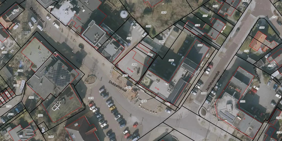 Het perceel waarop Dubbelstraat 9-B staat heeft een oppervlakte van 365 m². Dit is een groot perceel. De perceeloppervlakte wordt geregistreerd door het Kadaster. Gedetailleerde informatie over de maten van dit perceel kunt u vinden in het rapport Kadastrale kaart met maatvoering van Dubbelstraat 9-B.