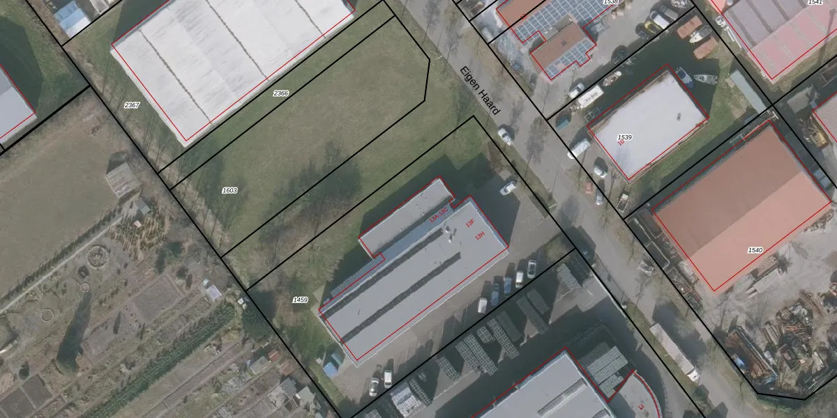 Het perceel waarop Eigen Haard 13-E staat heeft een oppervlakte van 2747 m². Dit is een zeer groot perceel. De perceeloppervlakte wordt geregistreerd door het Kadaster. Gedetailleerde informatie over de maten van dit perceel kunt u vinden in het rapport Kadastrale kaart met maatvoering van Eigen Haard 13-E.