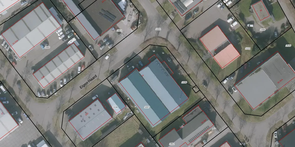 Het perceel waarop Eigen Haard 14 staat heeft een oppervlakte van 2259 m². Dit is een zeer groot perceel. De perceeloppervlakte wordt geregistreerd door het Kadaster. Gedetailleerde informatie over de maten van dit perceel kunt u vinden in het rapport Kadastrale kaart met maatvoering van Eigen Haard 14.