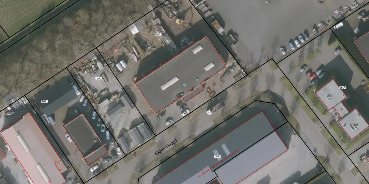 Het perceel waarop Eigen Haard 20-A staat heeft een oppervlakte van 3350 m². Dit is een zeer groot perceel. De perceeloppervlakte wordt geregistreerd door het Kadaster. Gedetailleerde informatie over de maten van dit perceel kunt u vinden in het rapport Kadastrale kaart met maatvoering van Eigen Haard 20-A.