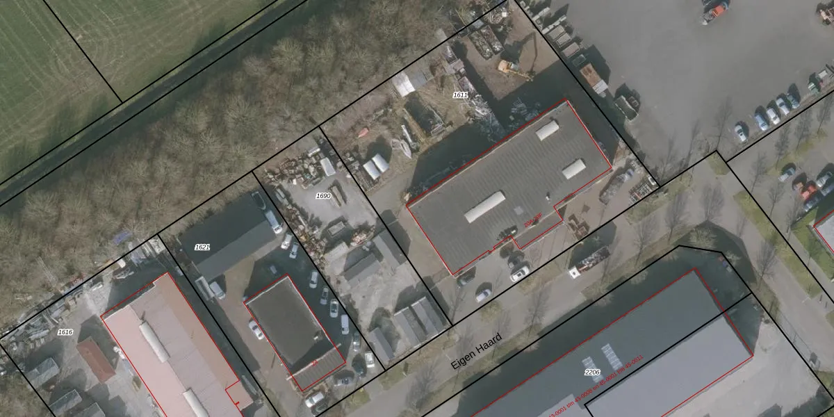 Het perceel waarop Eigen Haard 20-D staat heeft een oppervlakte van 3350 m². Dit is een zeer groot perceel. De perceeloppervlakte wordt geregistreerd door het Kadaster. Gedetailleerde informatie over de maten van dit perceel kunt u vinden in het rapport Kadastrale kaart met maatvoering van Eigen Haard 20-D.