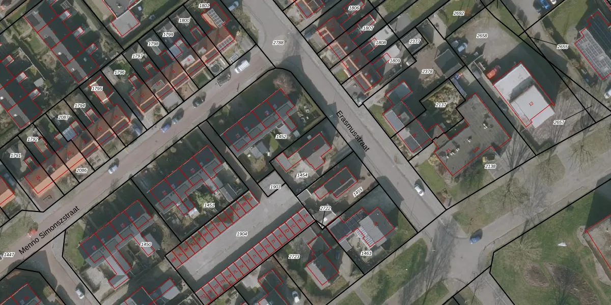 Erasmusstraat 10 is gelegen op kadastraal perceel BAL00A1454. Deze kadastrale aanduiding is uniek en wordt gebruikt door het Kadaster om eigendomsrechten en andere zakelijke rechten vast te leggen. Het perceel maakt onderdeel uit van de kadastrale gemeente Balk.